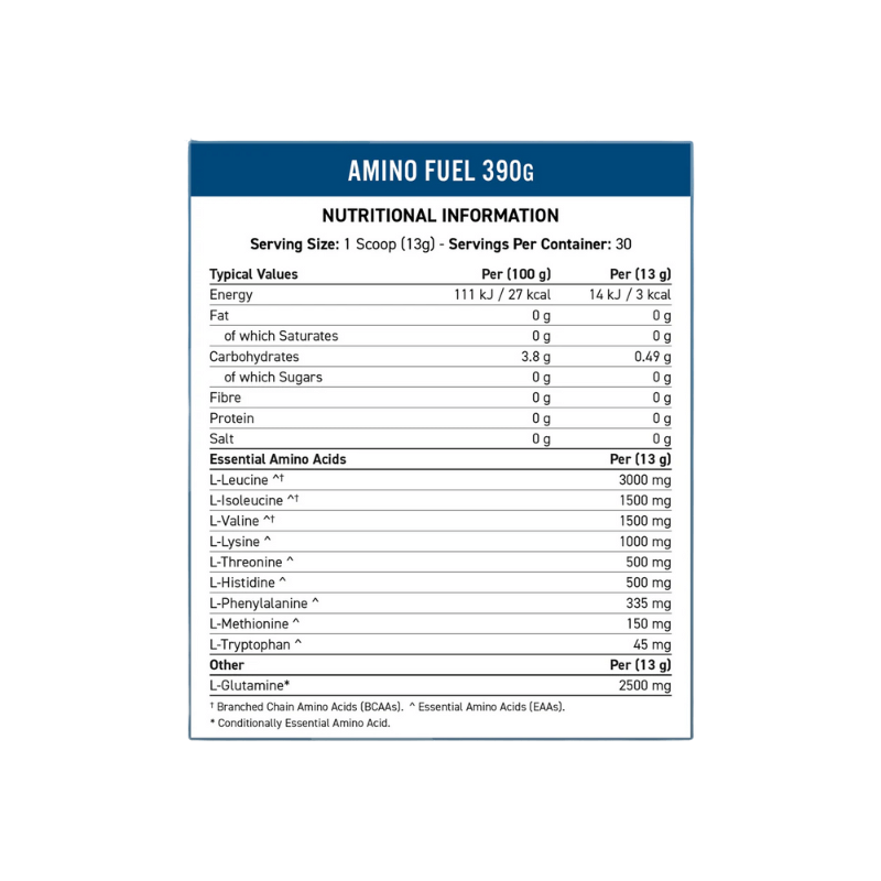 Applied Nutrition EAA Amino Fuel is a premium amino acid supplement delivering 11 grams of amino acids per serving, specially formulated to support muscle recovery, growth, and overall athletic performance. It contains 9 grams of essential amino acids (EAAs), including a potent 6 grams of branched-chain amino acids (BCAAs) in the optimal 2:1:1 ratio of L-Leucine, L-Isoleucine, and L-Valine. These amino acids are crucial for stimulating muscle protein synthesis and reducing muscle fatigue.