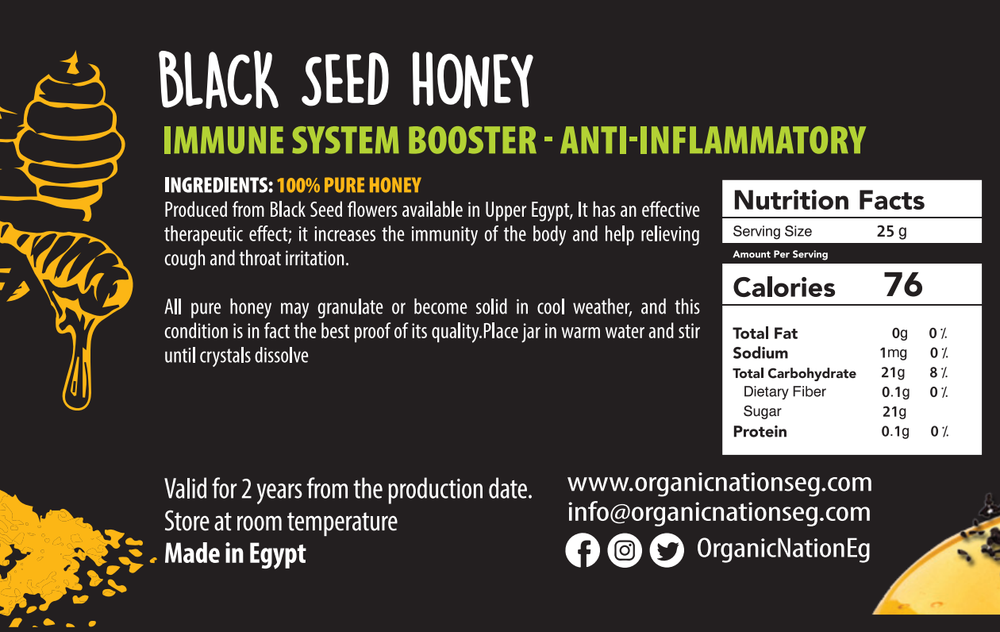Natural honey infused with Nigella Sativa (black seed) from Upper Egypt to support immunity, digestion, and daily vitality