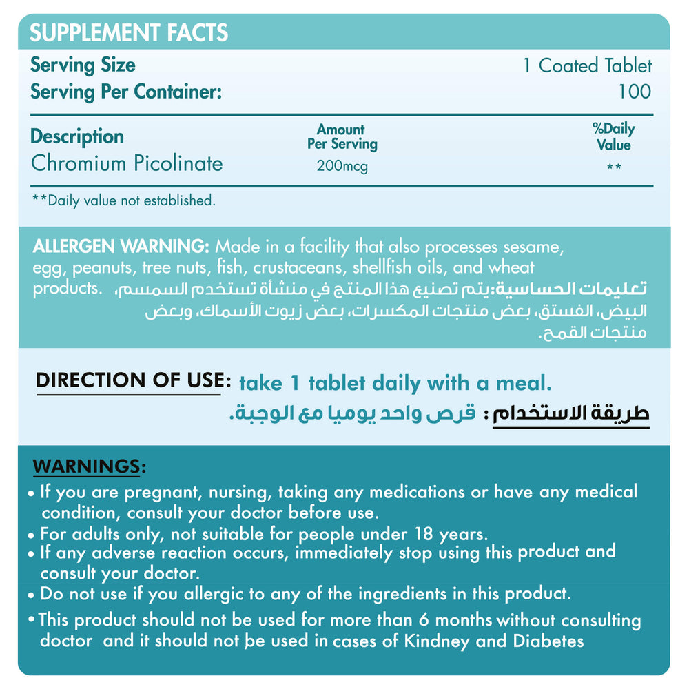 Chromium Picolinate 200MCG-100Serv.-100Tablets