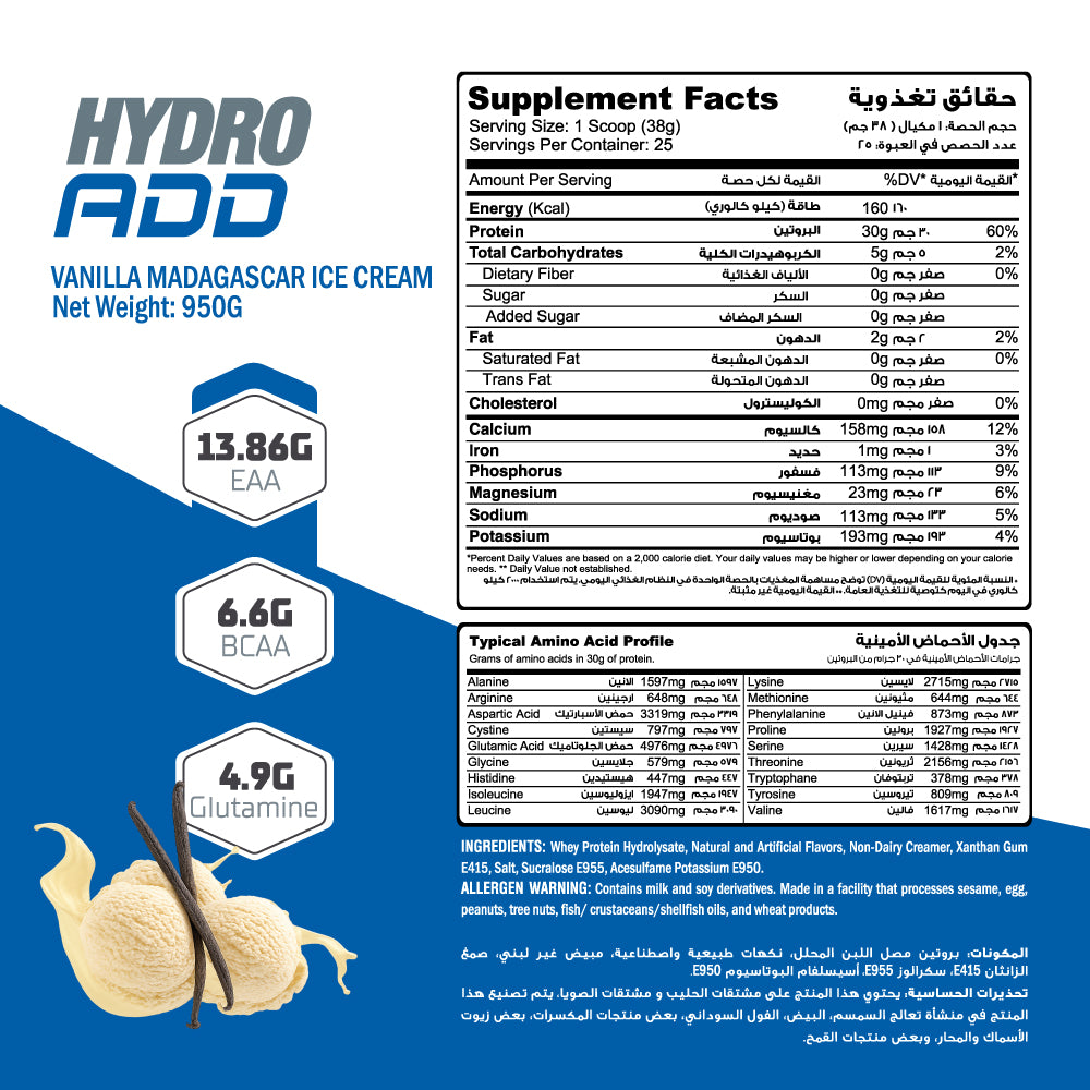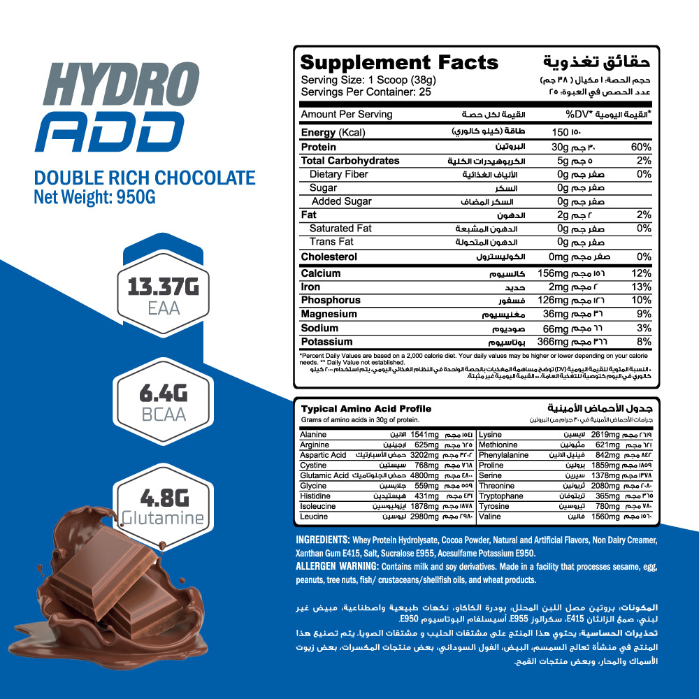 Muscle Add Hydro Add 100%Hydrolyzed Whey Protein Fastest Absorption-25Serv.-950G.